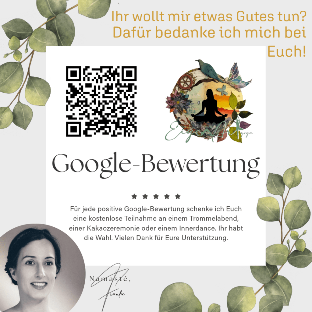 Ich würde mich riesig über eine positive Google-Bewertung von dir freuen. Solche Bewertungen helfen mir ungemein dabei, sichtbarer zu werden und mehr Menschen mit meinen Angeboten zu erreichen.